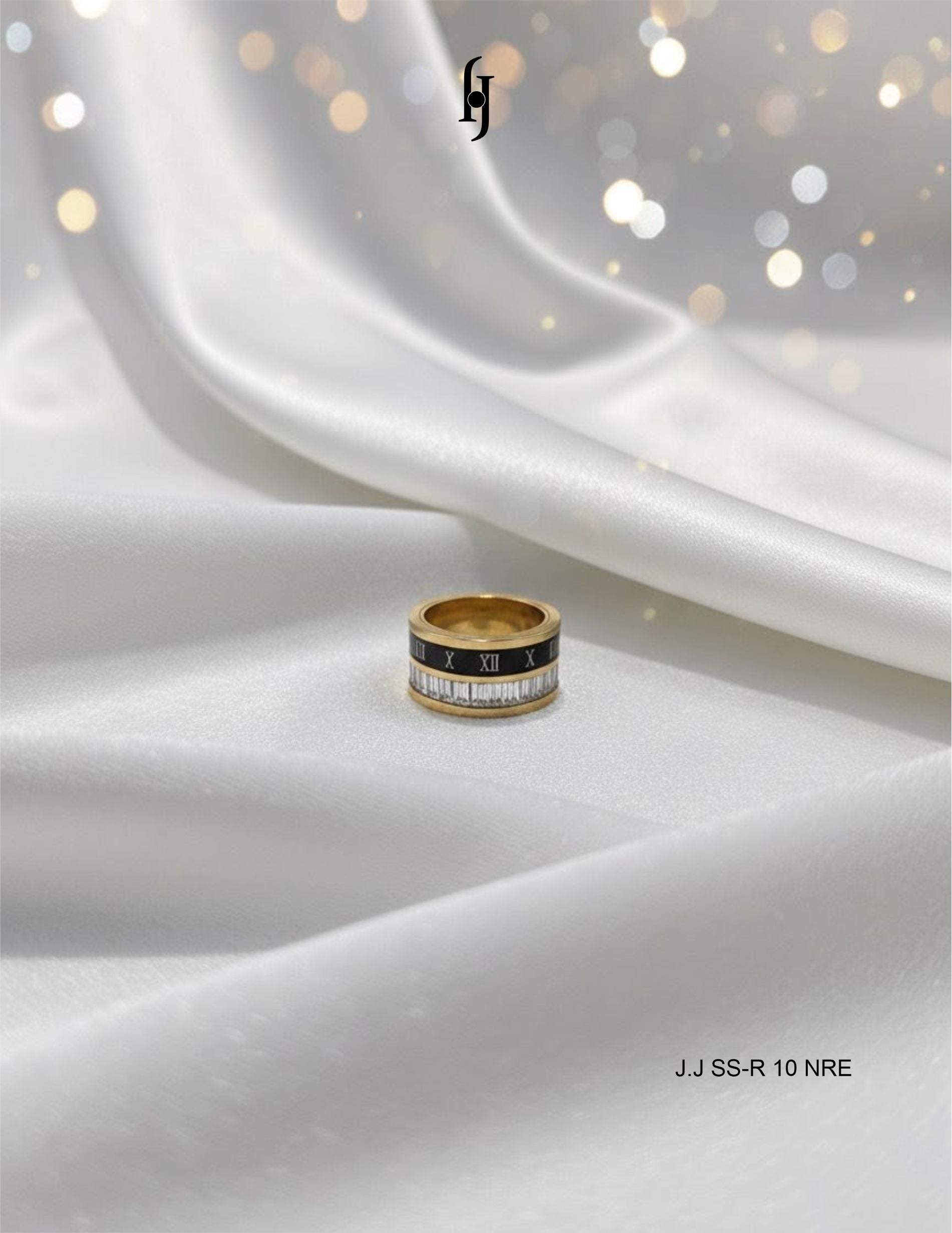 Design: Wide, multi-row silhouette featuring a black Roman numeral band atop a crystal channel.