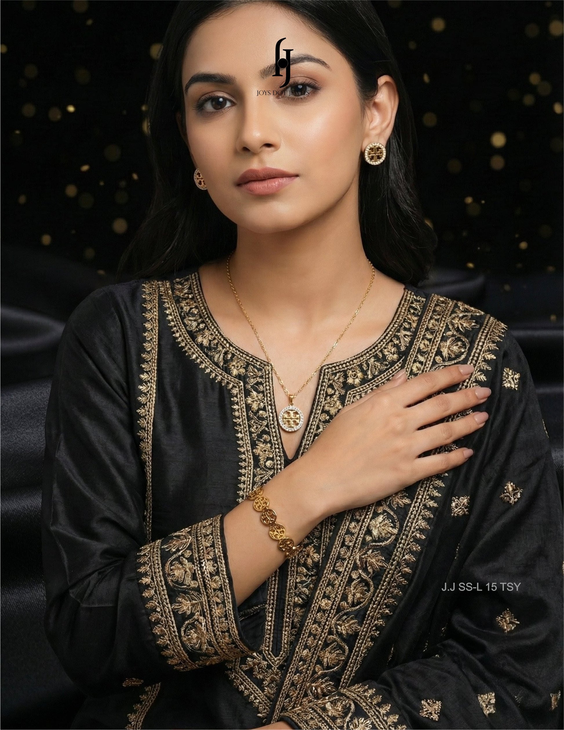 Obsessed with that iconic designer aesthetic but on a budget? Our Tory Burch Inspired Locket Set is the ultimate flex for your jewelry collection, offering that high-end look for less. This stunning combo deal features the signature laser-cut logo design that radiates "Quiet Luxury" and effortless class. Whether you wear the pendant for a polished office look or stack the full set for a festive get-together, this is the must-have accessory for every trendy Pakistani woman.