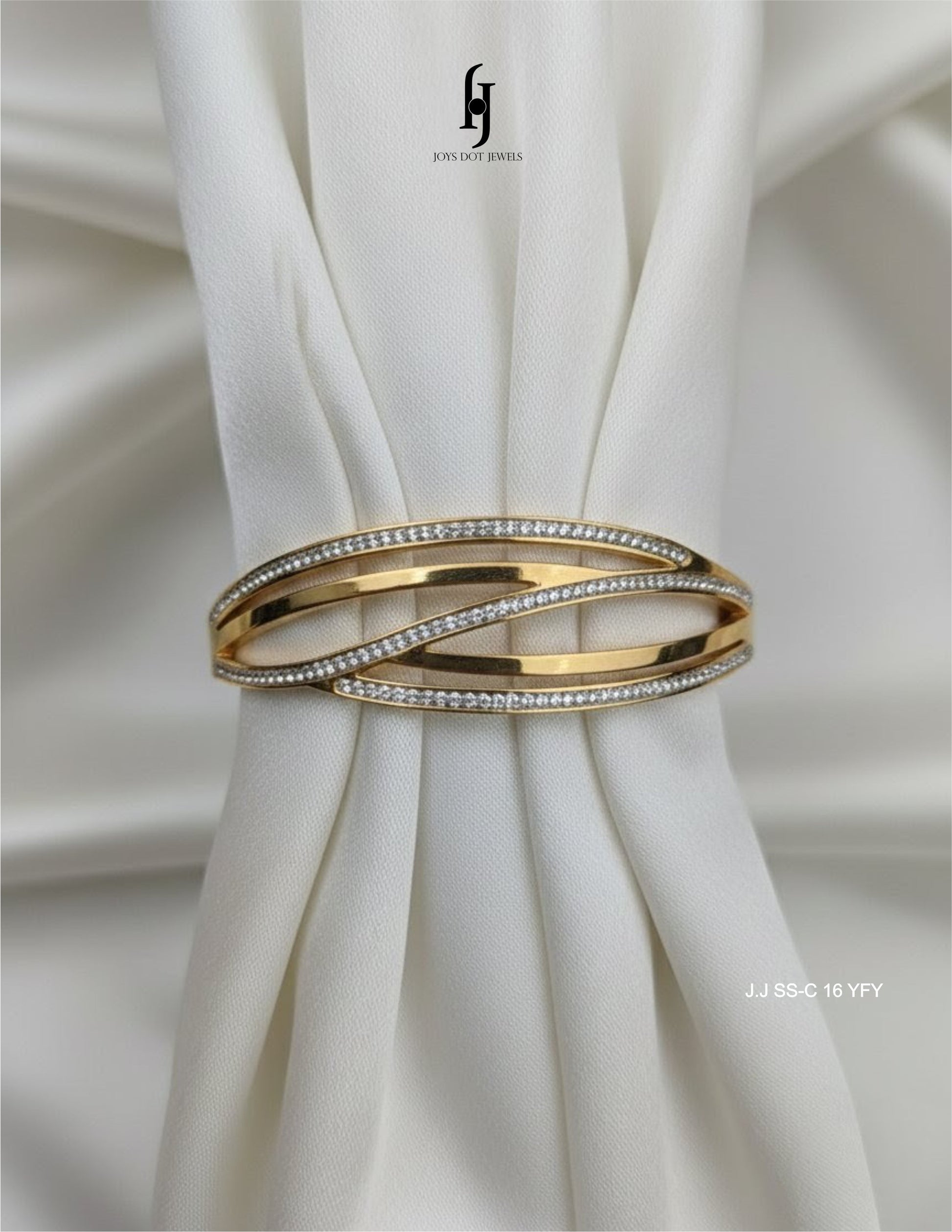 The Twist Handcuff Bangle is the ultimate flex for your daily wear accessory. Featuring a stunning interwoven design where polished gold lines cross over sparkling crystal-paved bands, this bangle gives luxury vibes on a budget.